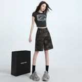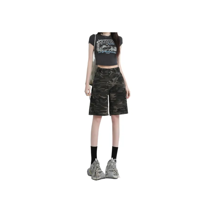 Wen Shan Джинсовые шорты Женские Армейский зеленый