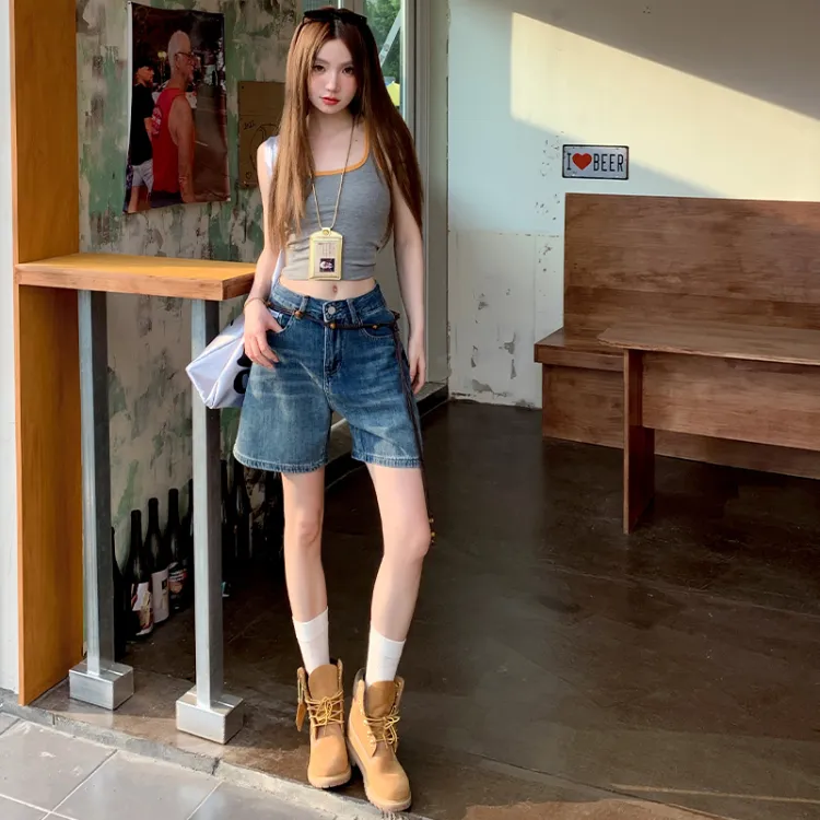 Wen Shan Винтажные синие женские джинсовые шорты