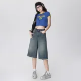 Wen Shan Джинсовые шорты Женские Винтажные синие