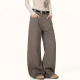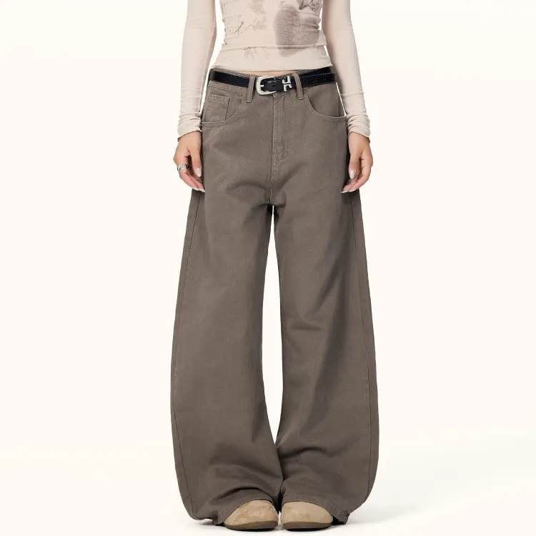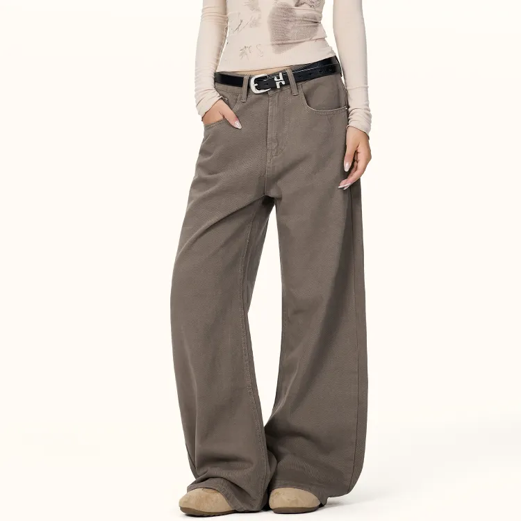 Wen Shan Кофе Брюки Женские Джинсы