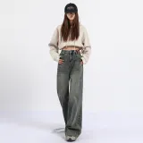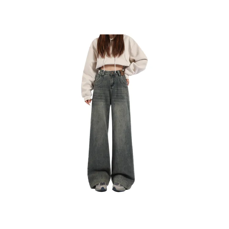 Wen Shan Бетонно-серые Брюки Женские Джинсы