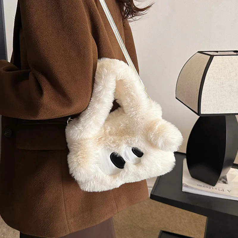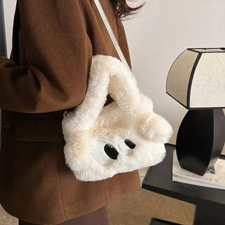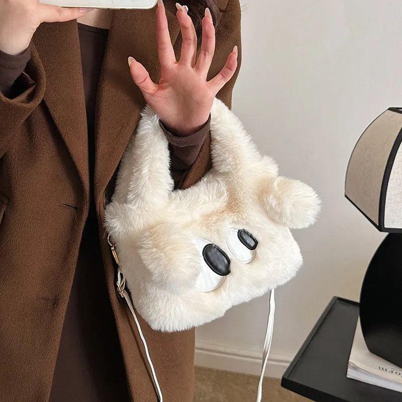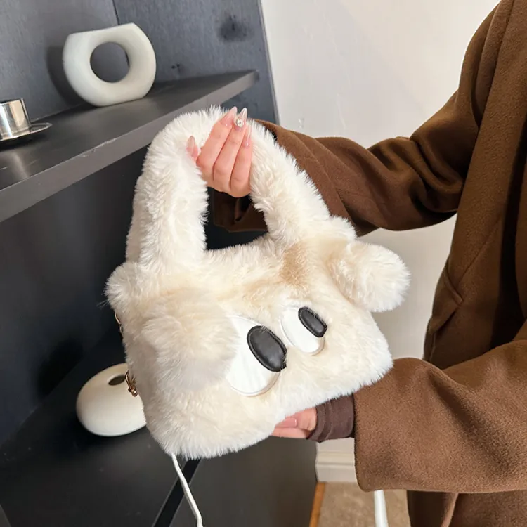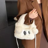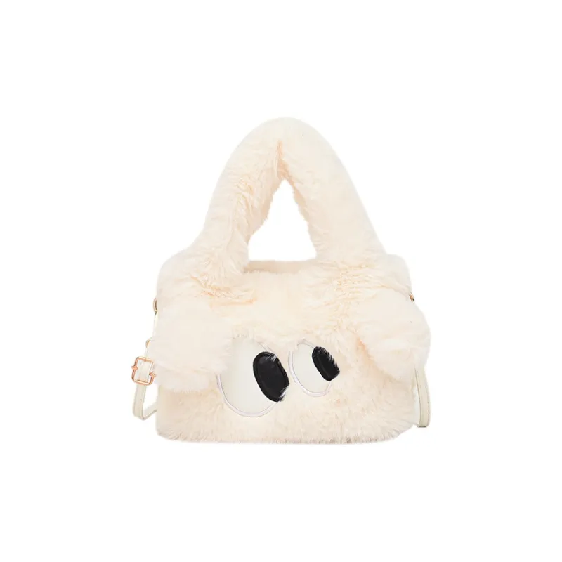WHERE WHAT WHO Плюшевая сумка стандартная женская цвет экрю кофейный