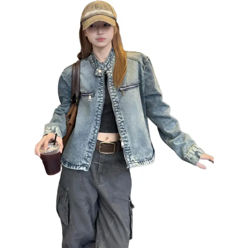 WICK BUEN Винтажный синий Женские джинсовые куртки