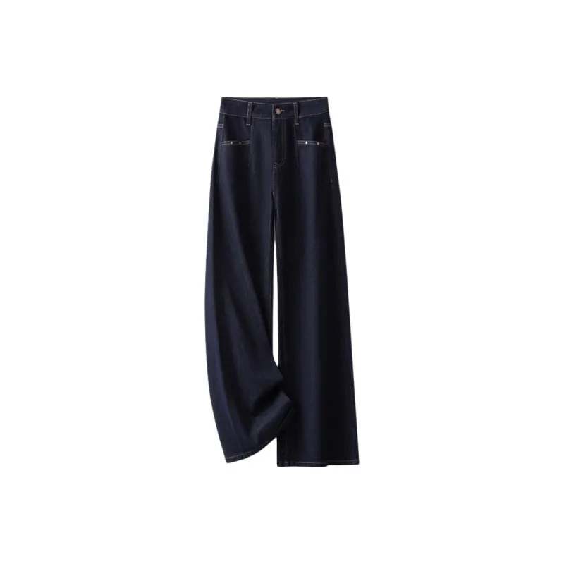 Джинсы с широкими штанинами Женские Spring and Autumn 2025 HIGH RISE Супер Стильный Драпированный Корейский стиль Брюки прямого кроя