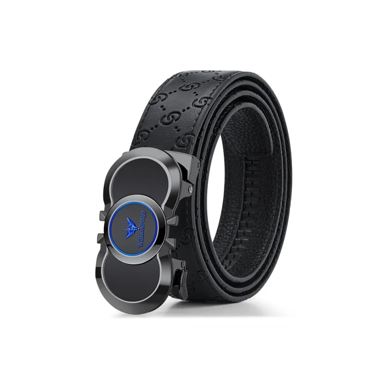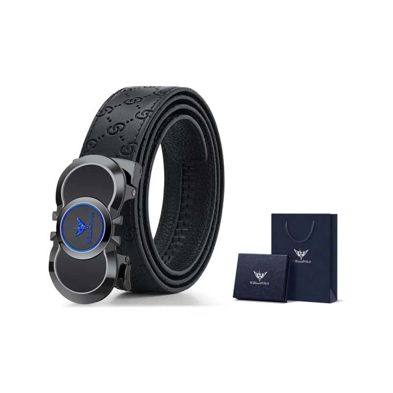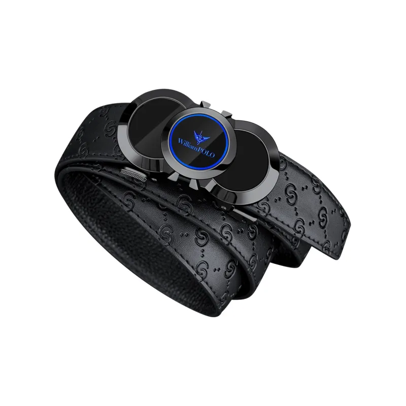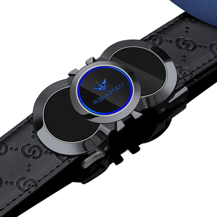 WilliamPOLO Ремни из коровьей кожи Мужские с металлической пряжкой синий логотип ширина 3,5 см