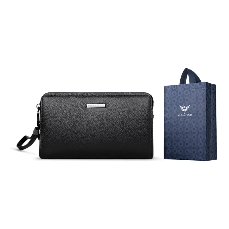 WilliamPOLO Клатч из крупнозернистой текстуры коровьей кожи с анти-кражей замком большой мужской многоцветный