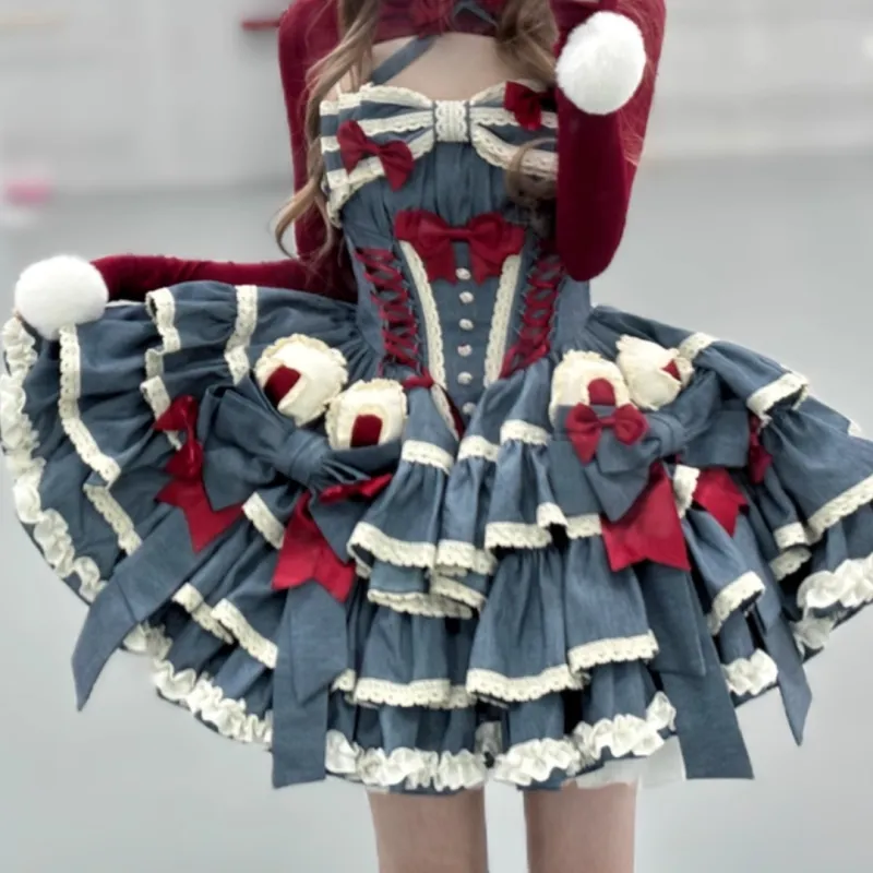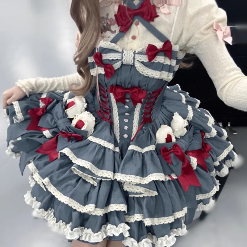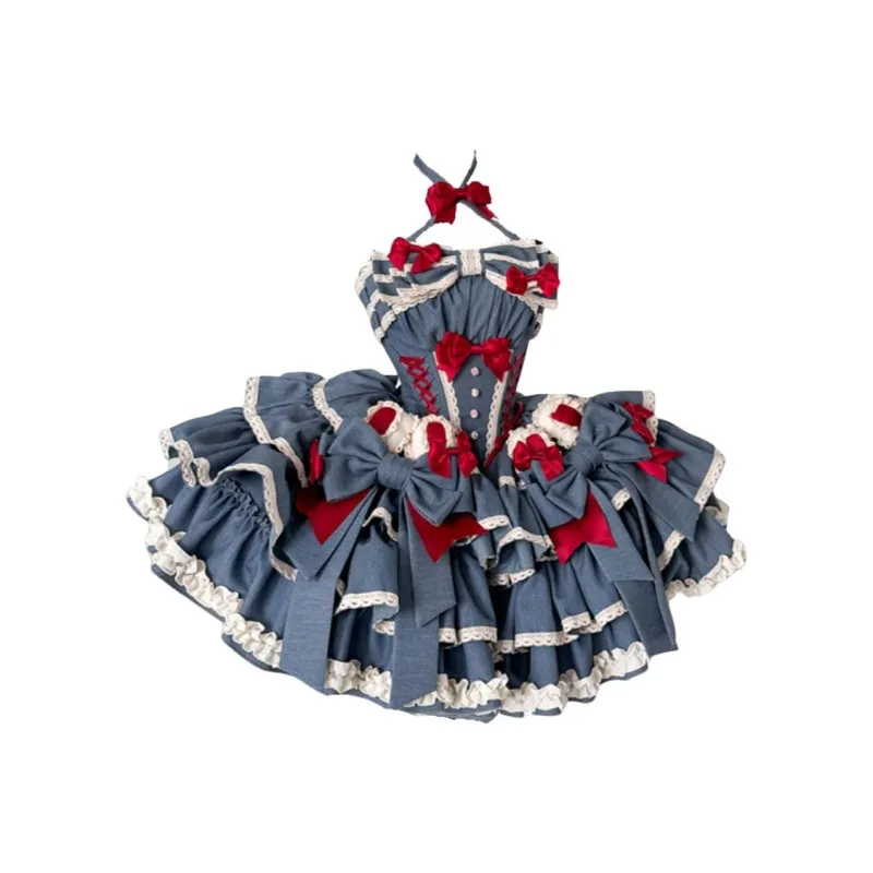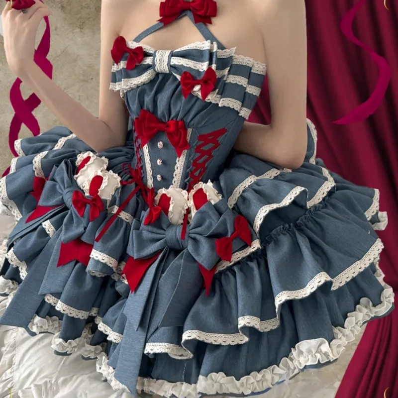 WLEQK Синий Женские Лолита Платья
