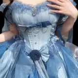 WLEQK Blue Dress + Гламурный стиль с Большим Хвостом платья + Четырехслойный Мягкий Петтикоат [Кольцо Float на Шее Не включено] Женское Лолита Платье