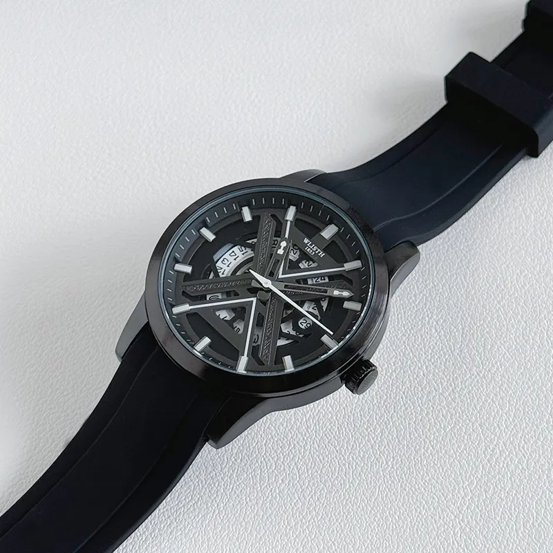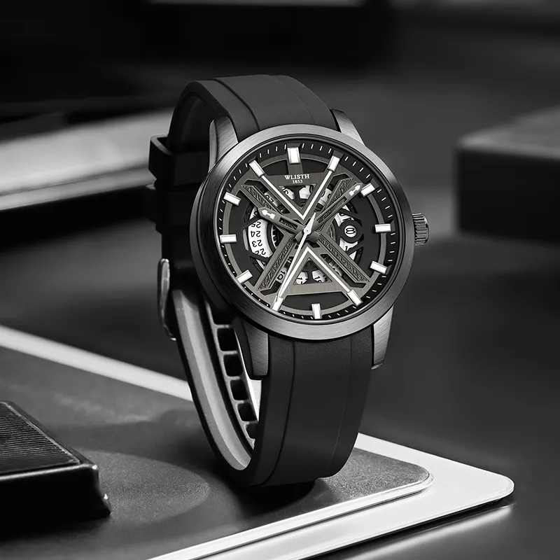 WLISTH Кварцевый механизм силиконовый ремешок мужские часы черный циферблат