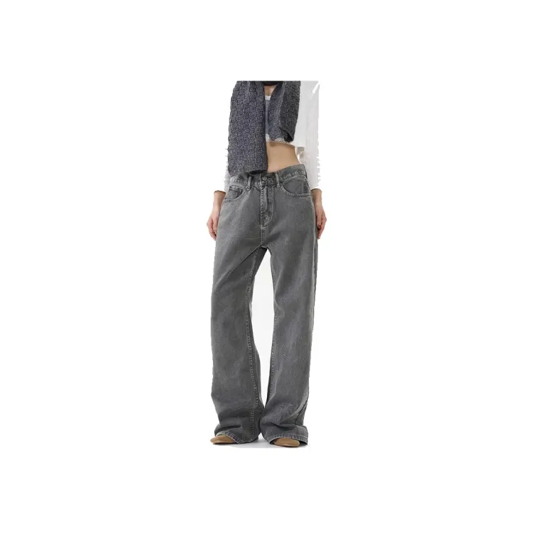 WLNEXT Высокий уровень позиционирования стиля Дымчато-серый Джинсы от модного бренда излучающие прохладу и силу унисекс серый