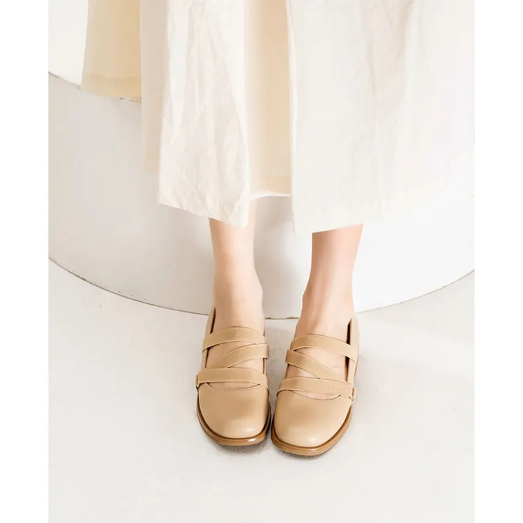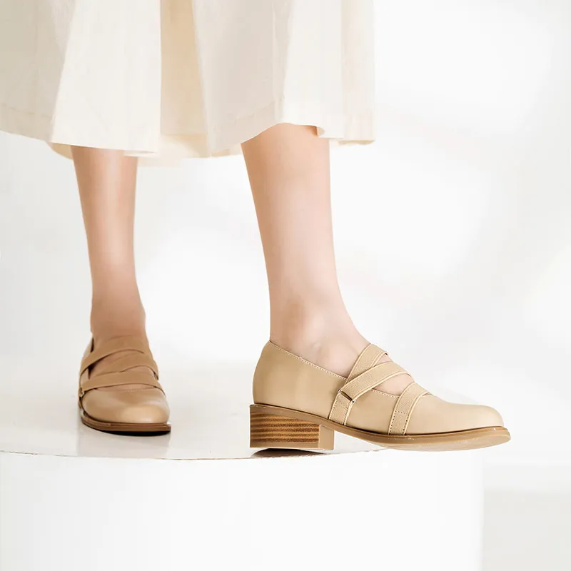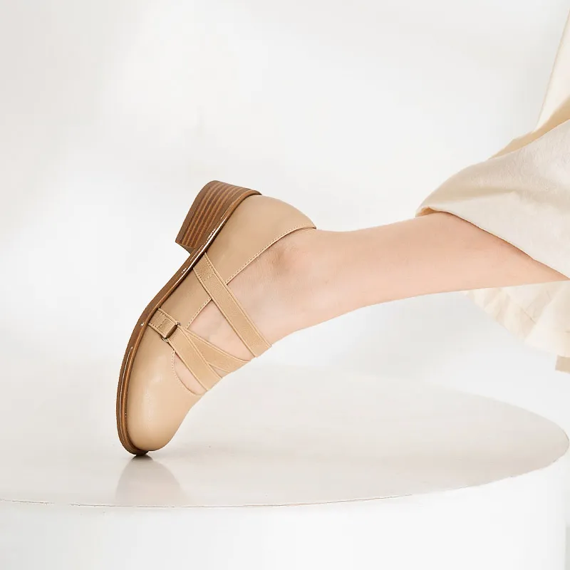 Wonderful Couple Грубый каблук Туфли Мэри Джейн 4CM Женские Абрикос