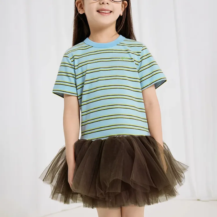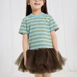 Woobaby Платье SS25 Синие полосы для детей 3-7 лет