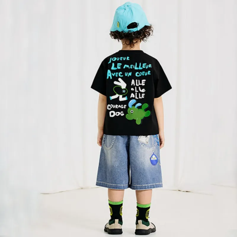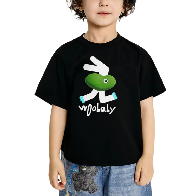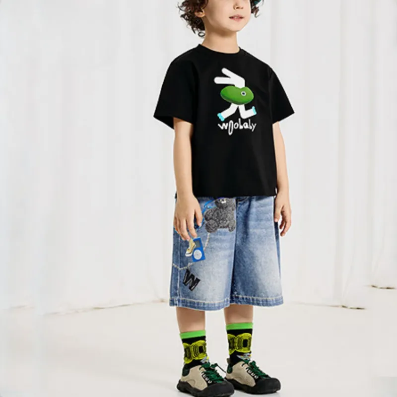 Woobaby T-рубашка SS25 черная Bunny Run для детей 3-7 лет
