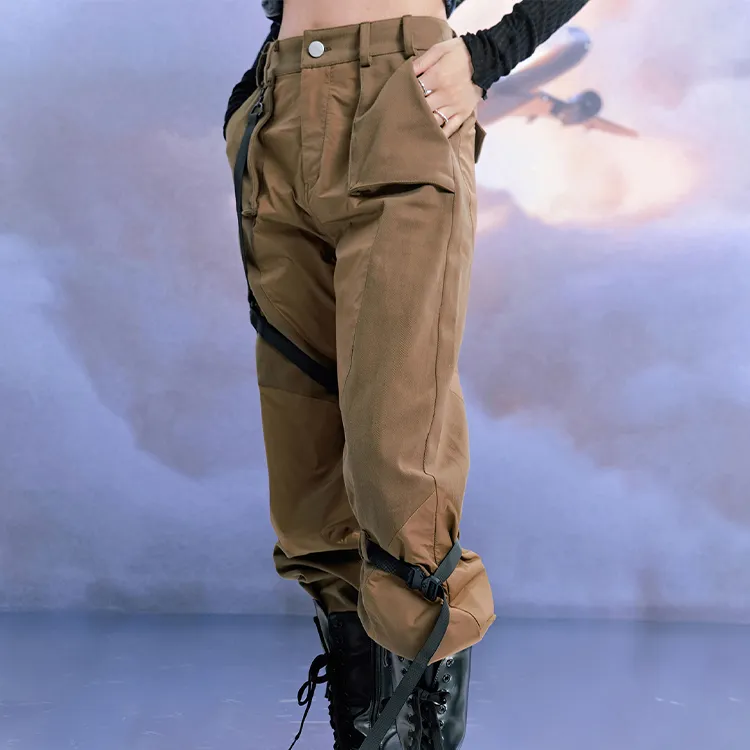 WooHa Прямой крой Брюки Умеренный Повседневный Брюки Женские