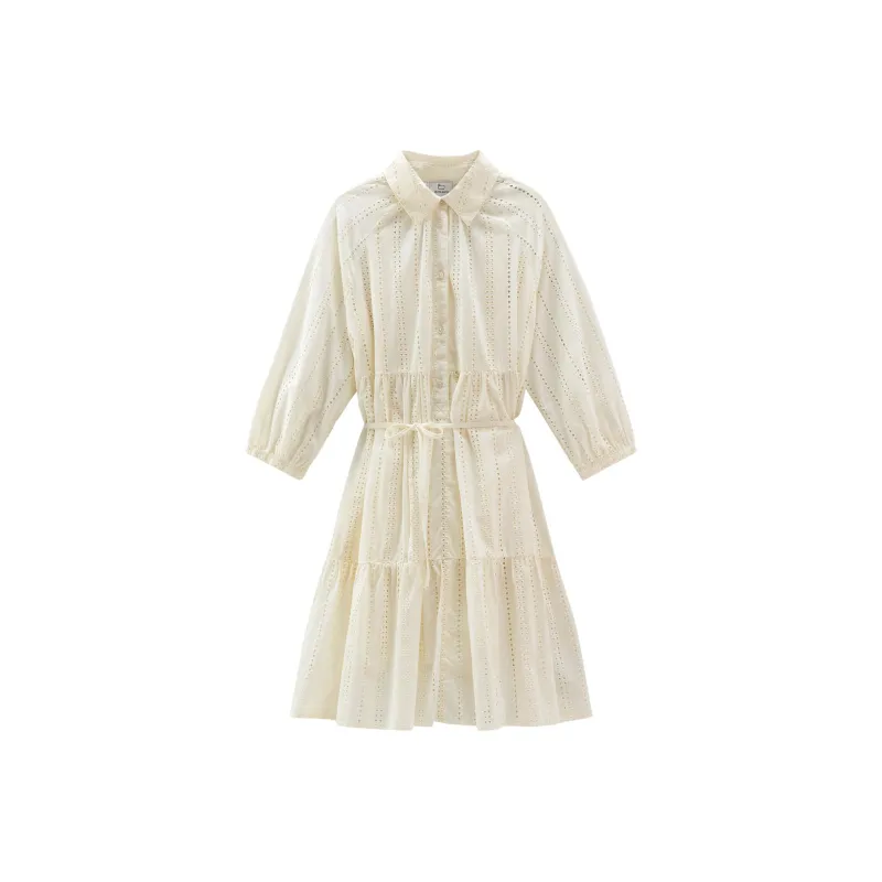 WOOLRICH SS24 Длинное платье с длинными рукавами женское светло-бежевый