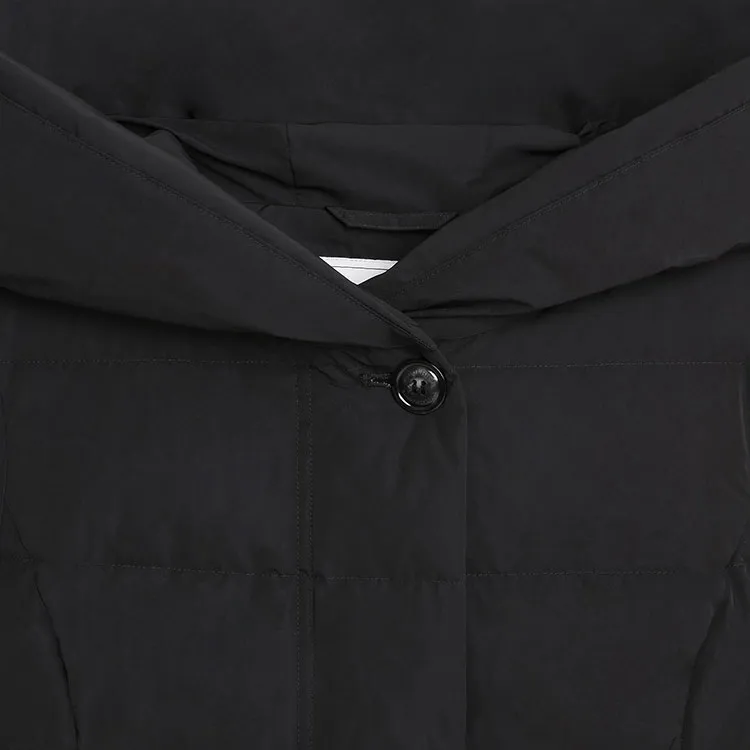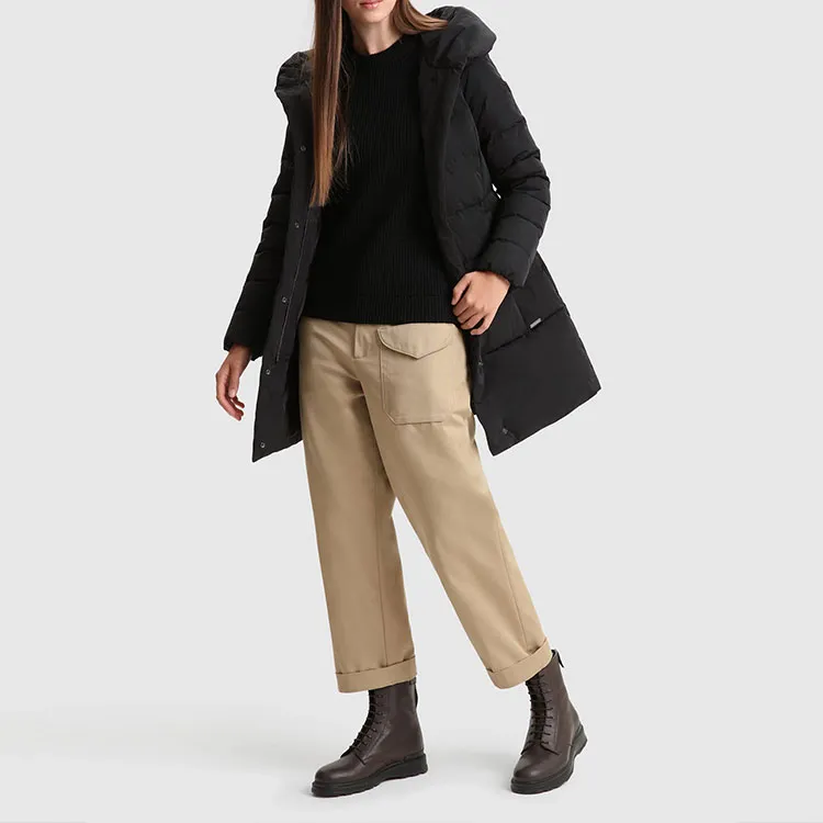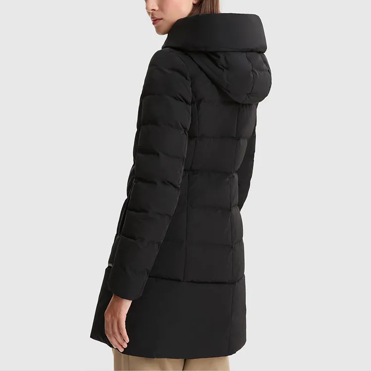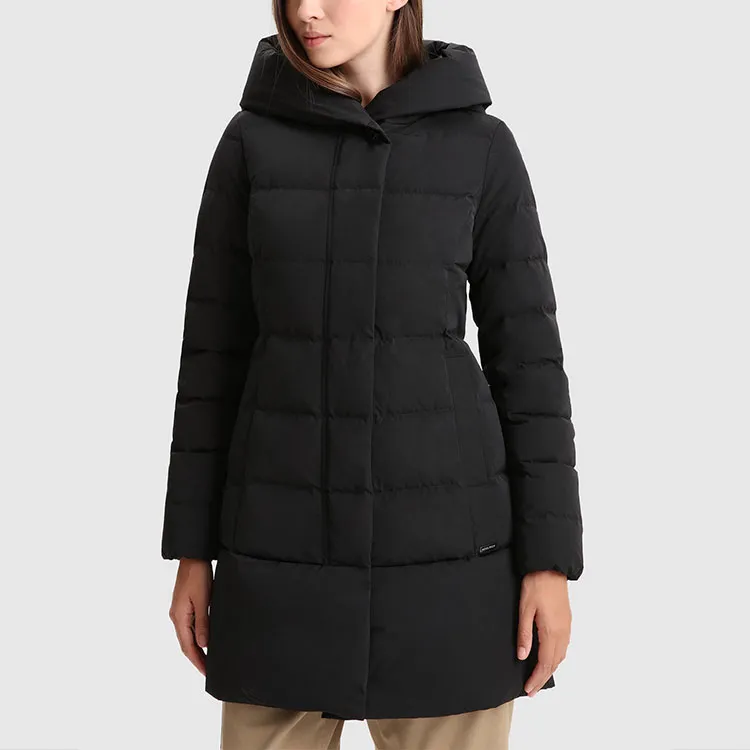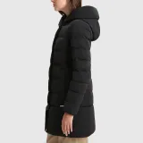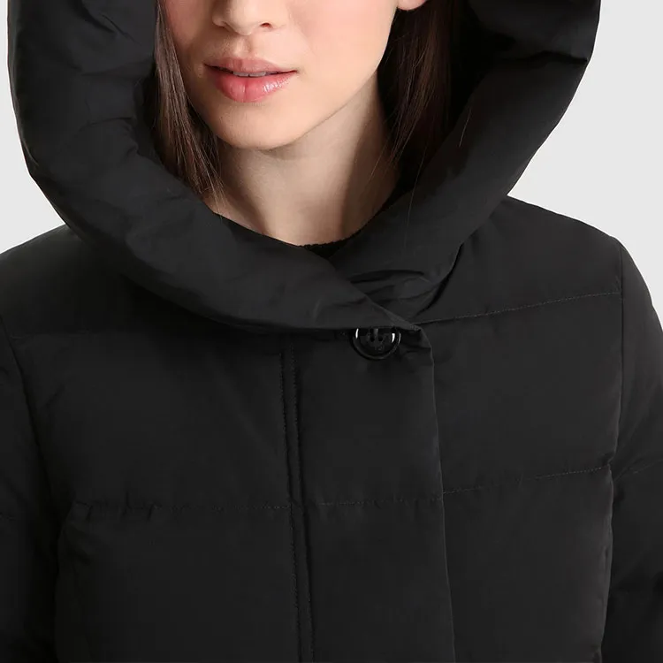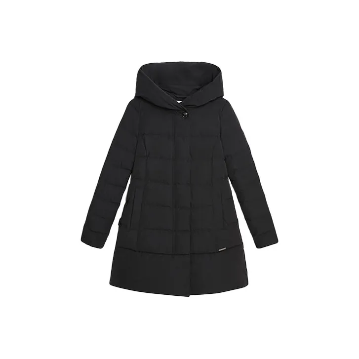 WOOLRICH Однотонный с капюшоном средний пуховик женский черный