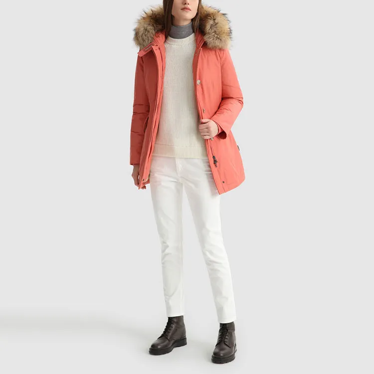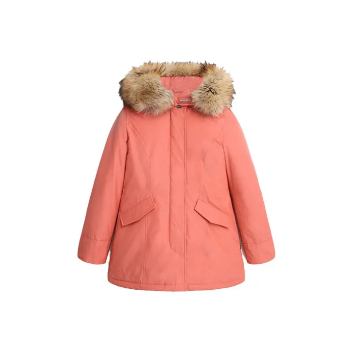 WOOLRICH Однотонный С капюшоном Свободный крой MID Длина Пуховик Женский Розовый