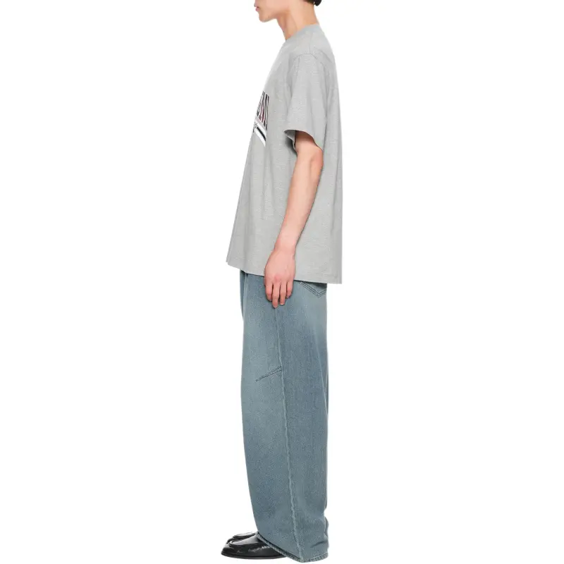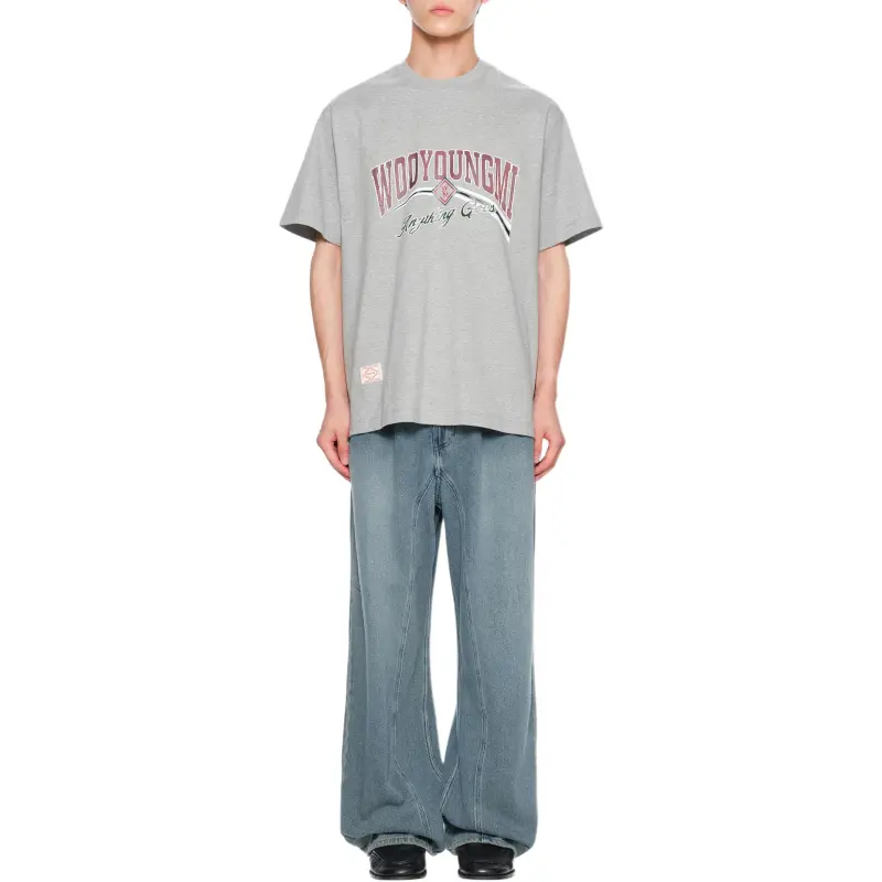 WOOYOUNGMI FW25 Серый Lenticular Логотип T Рубашка Мужская