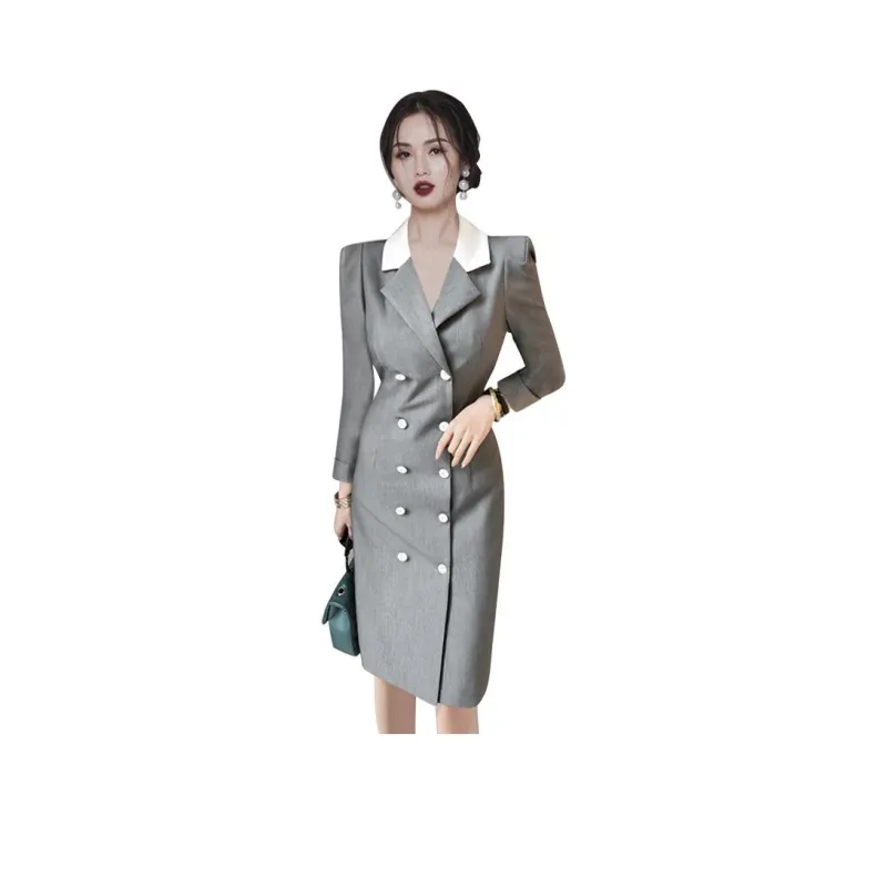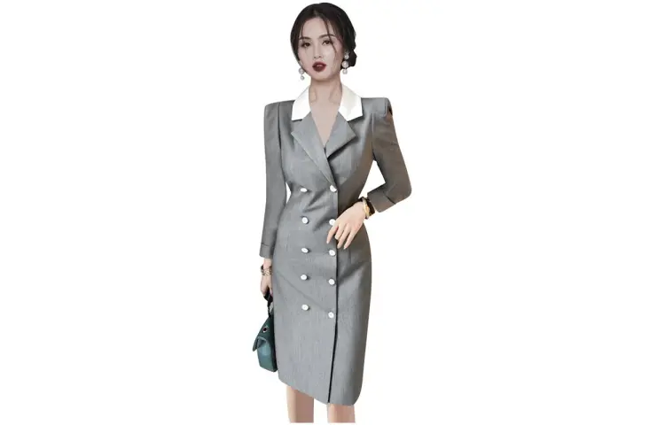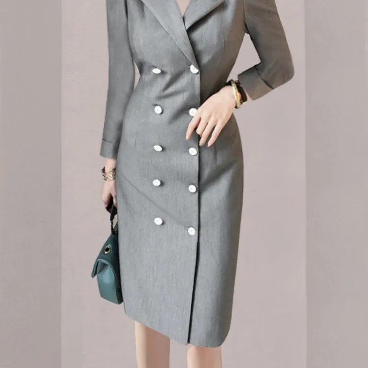 Длинное платье с длинными рукавами женское серого цвета