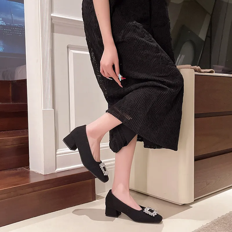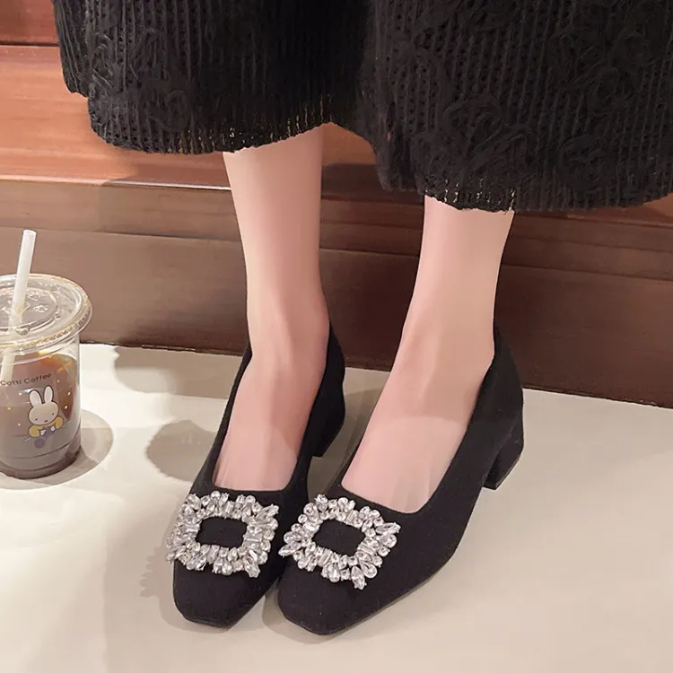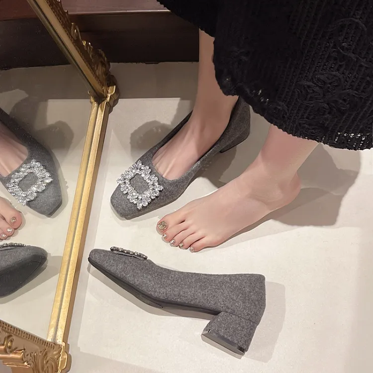 Wuji CHANEL Inspired Квадратный носок стразы премиум ощущение без подкладки женская обувь