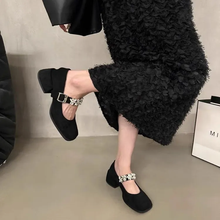 Wuji Грубый каблук Элегантность Обувь без подкладки Женская обувь Женские