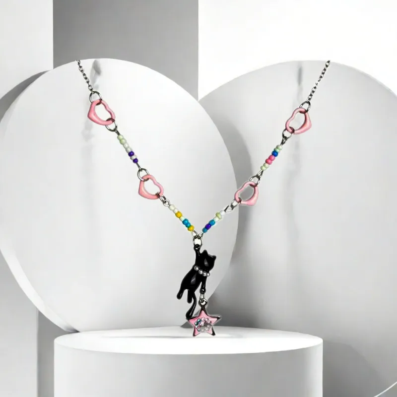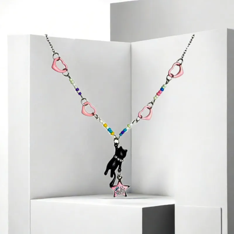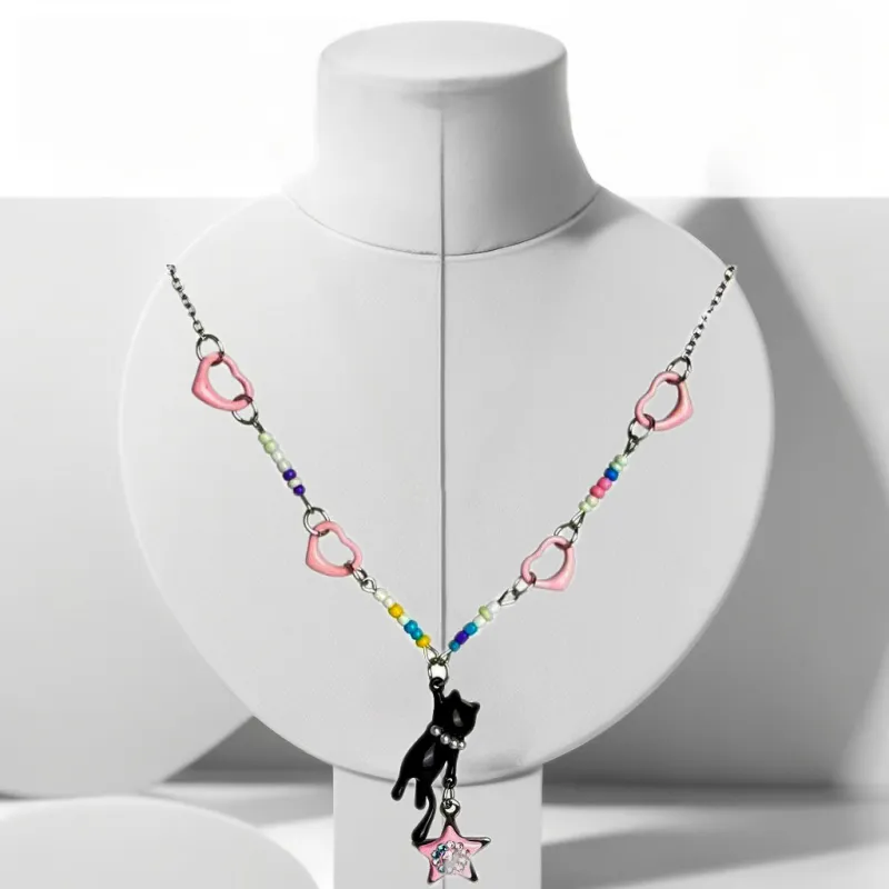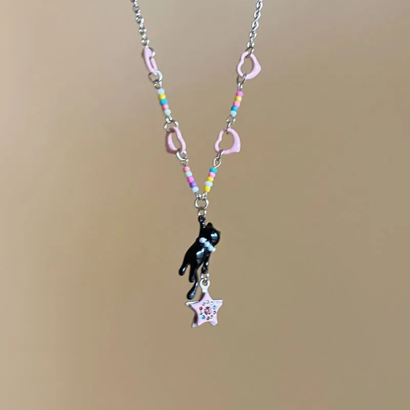 Чёрный кот Звезда Ожерелье