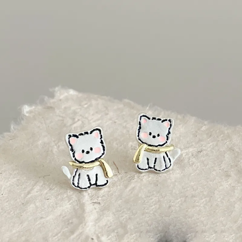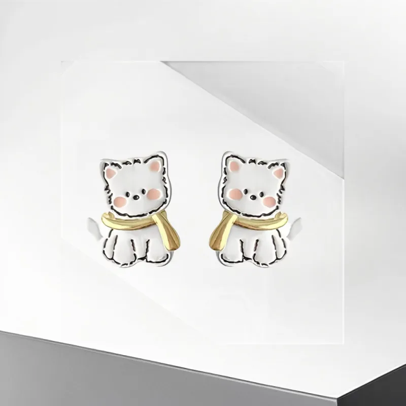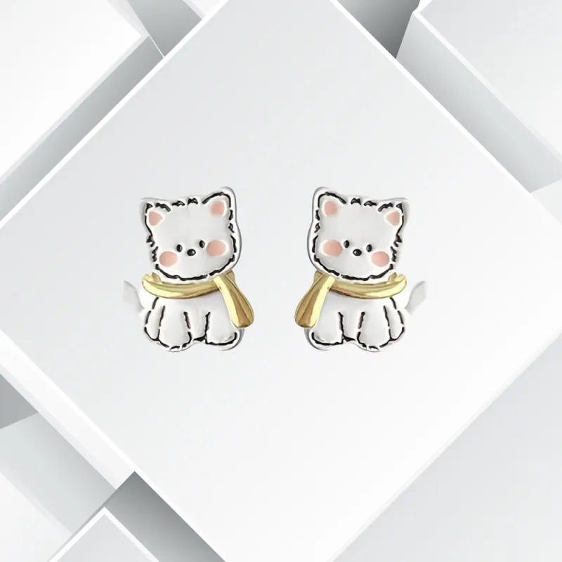 Серьги-гвоздики с шарфом для щенка