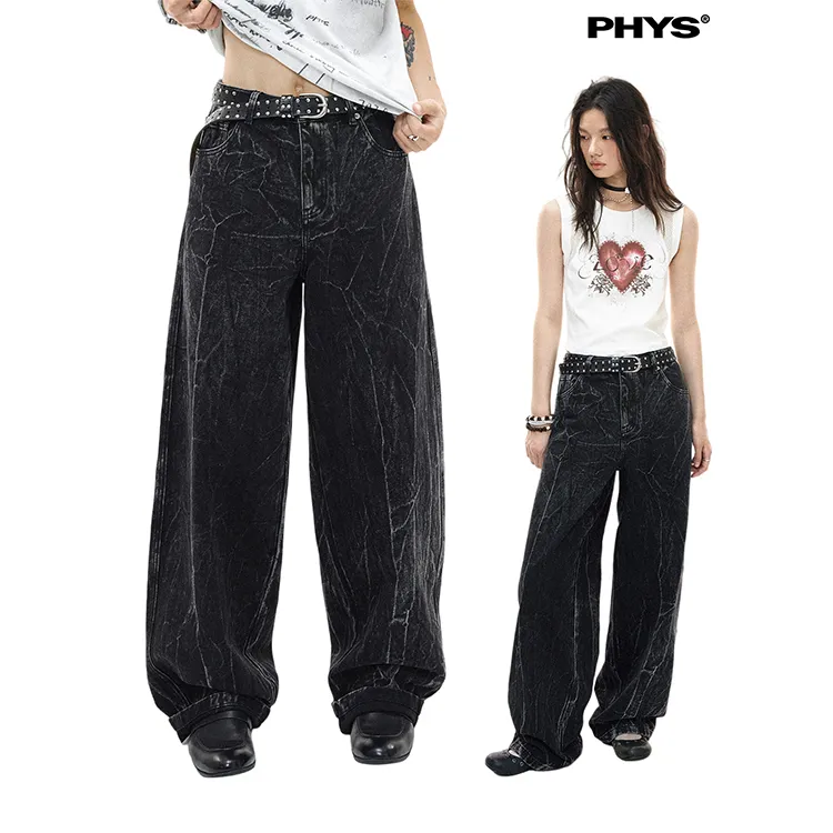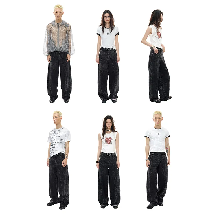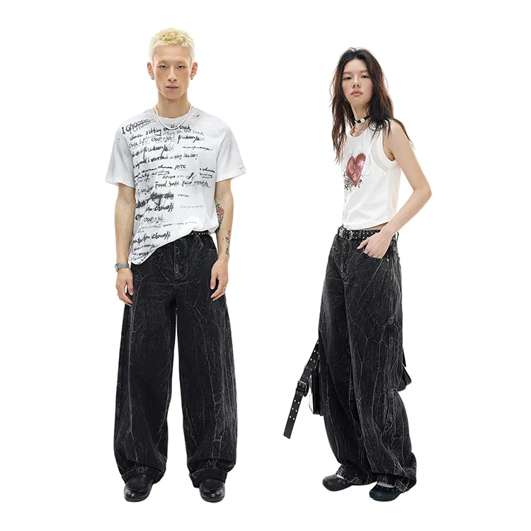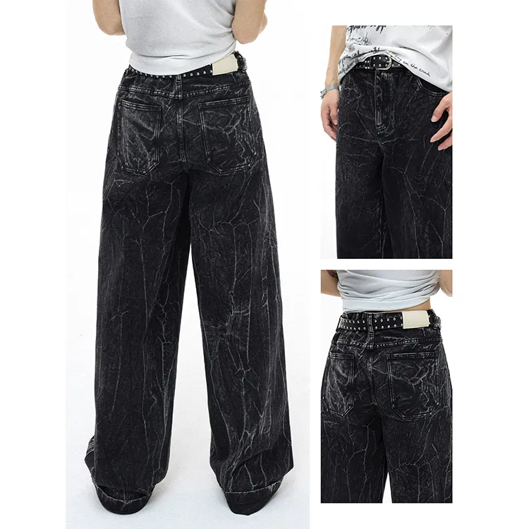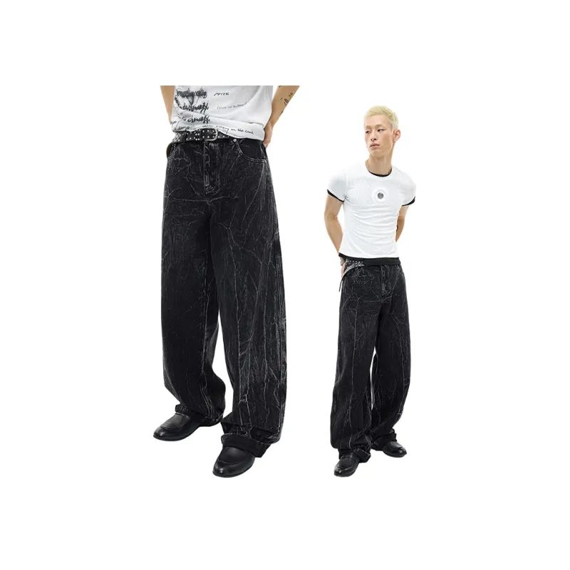 WULISHAONIAN Кракелюр Черные Унисекс Джинсы