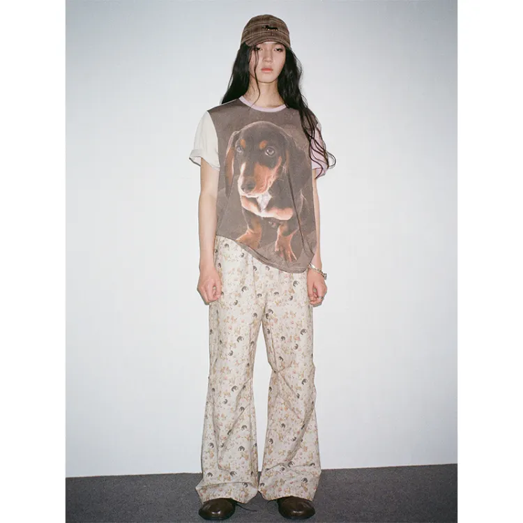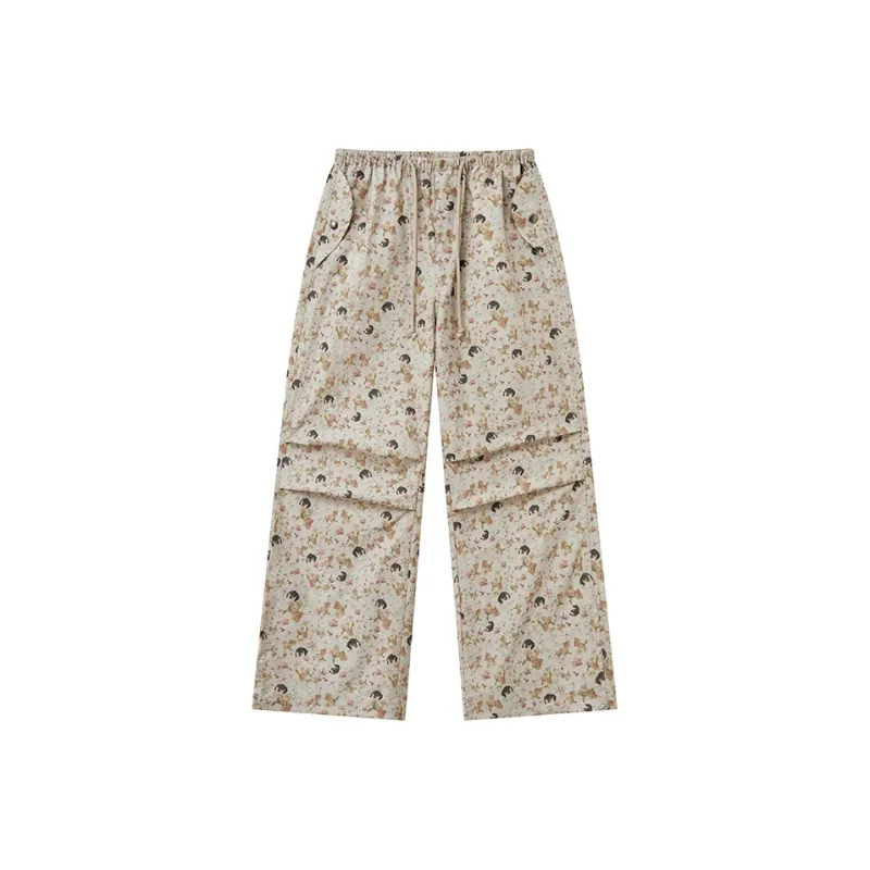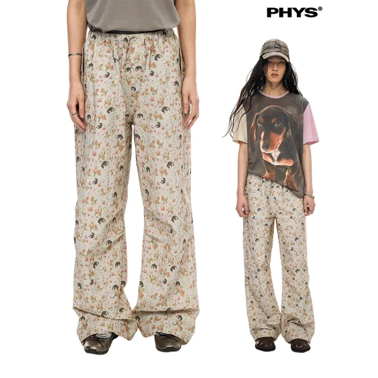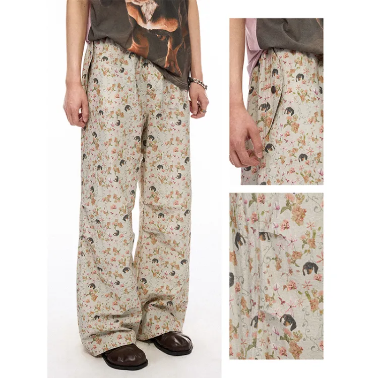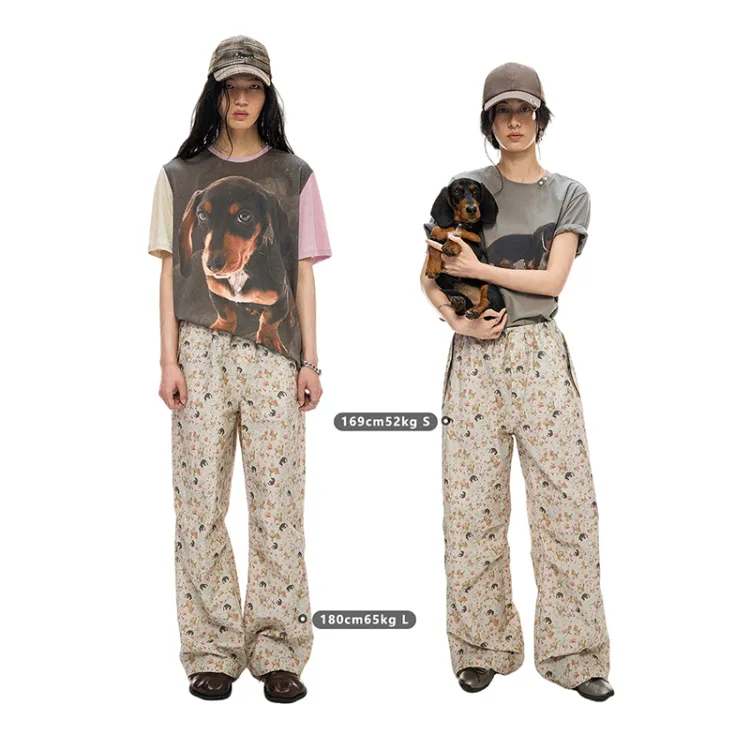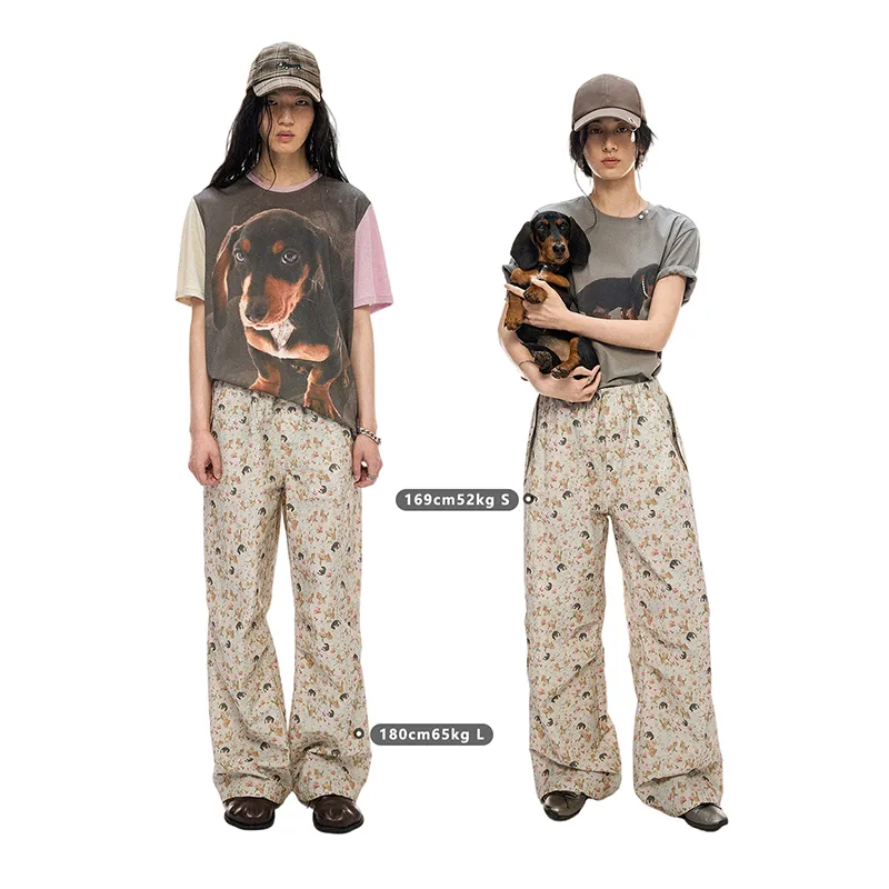 WULISHAONIAN Щенок Цветочный Эластичный Пояс Легкие Повседневные Штаны Унисекс