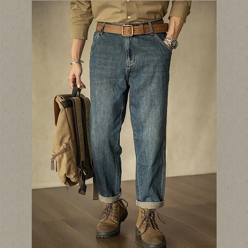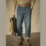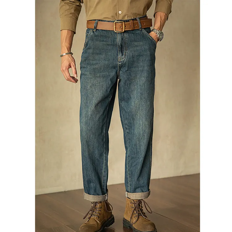Винтаж Выстиранный Деним Синий