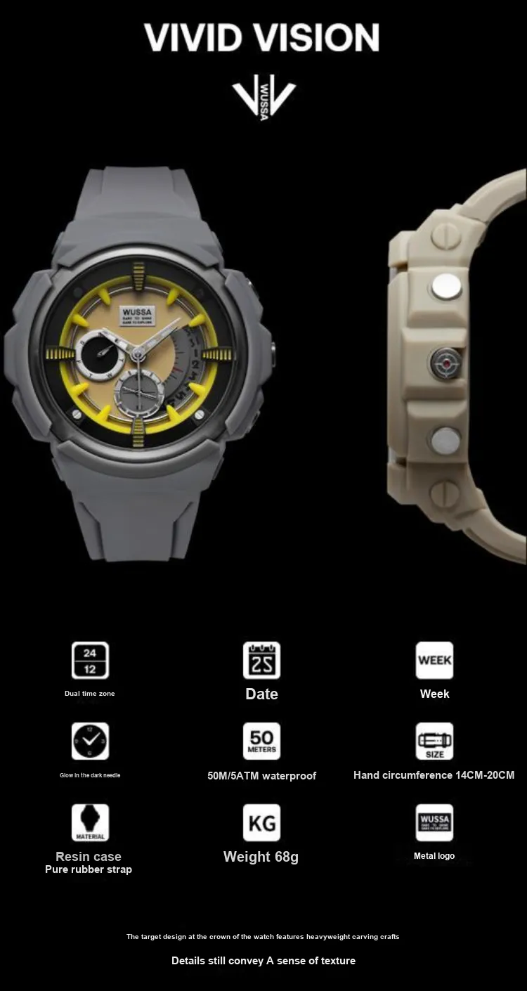 WUSSA VV Collection Кварцевый механизм Часы Унисекс Циферблат часов Кофе