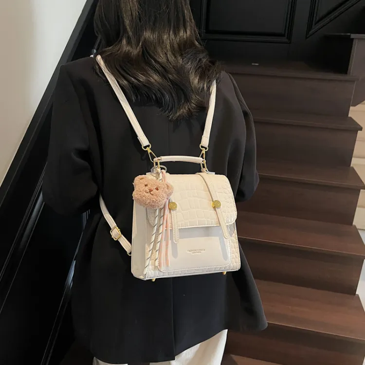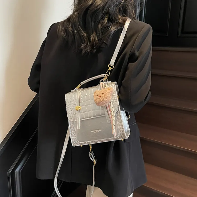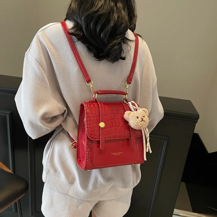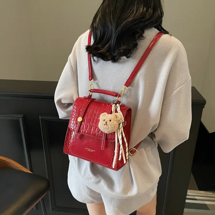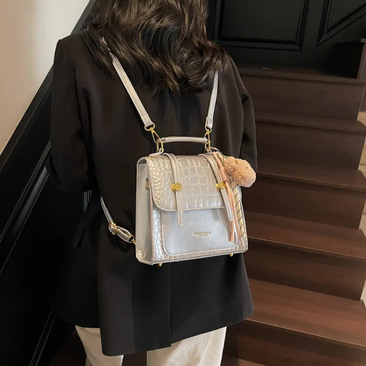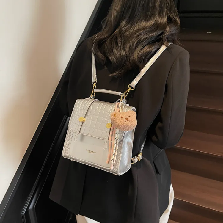 WXRX ПУ (полиуретан) Рюкзак Женские Экрю Серебряный Бургунди Коричневый Черный