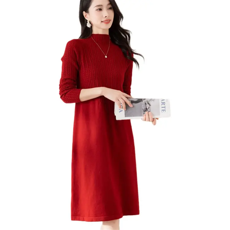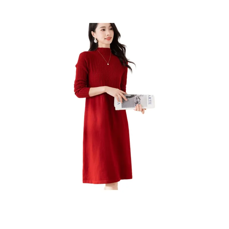 X MOOM Длинное платье с длинными рукавами женское бордового цвета