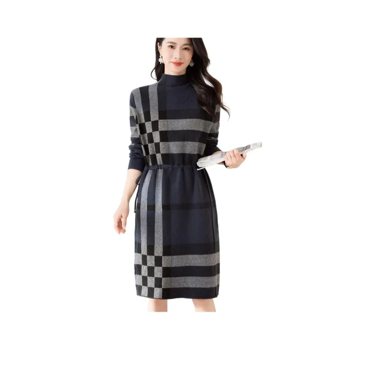 X MOOM Длинное платье с длинными рукавами женское темно-синий