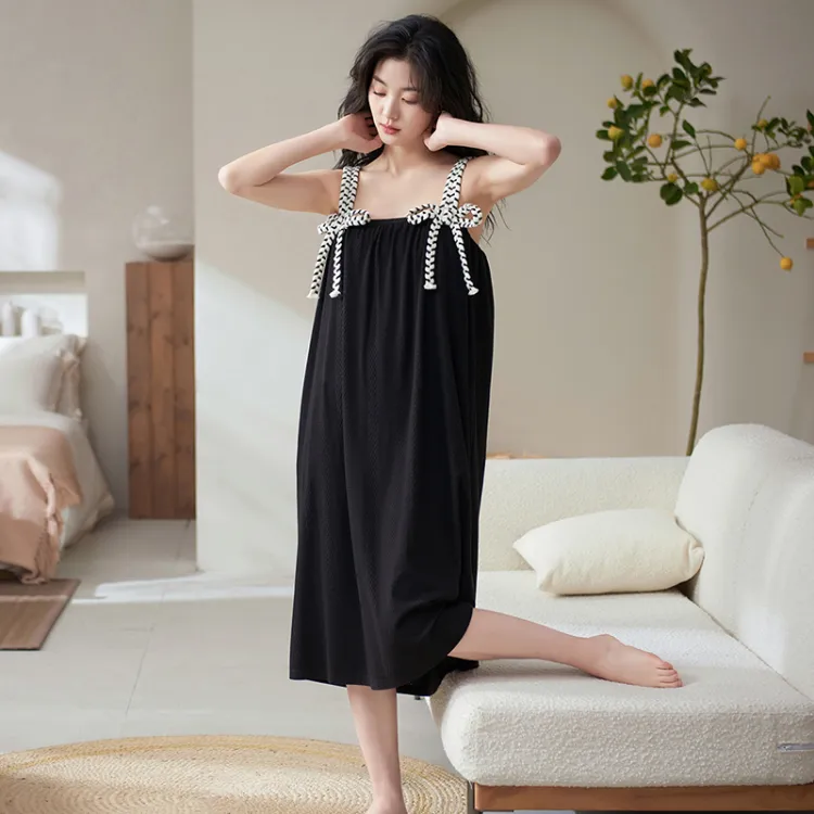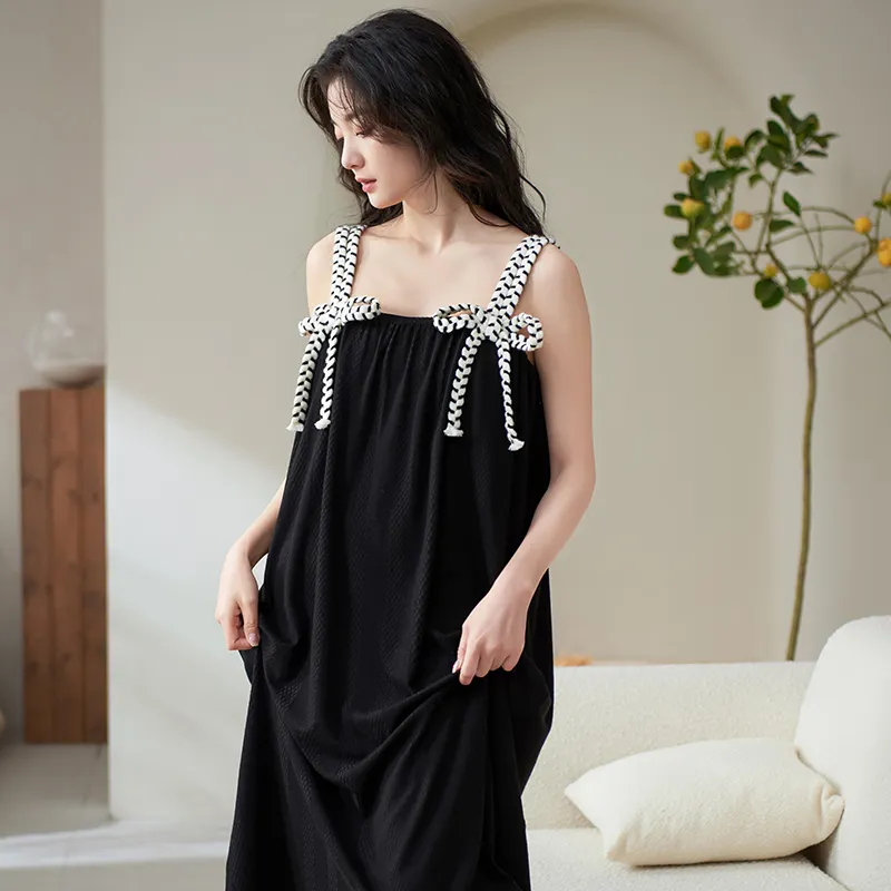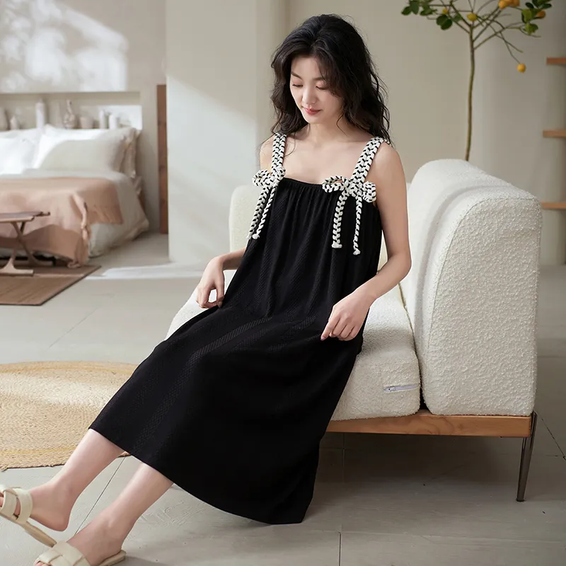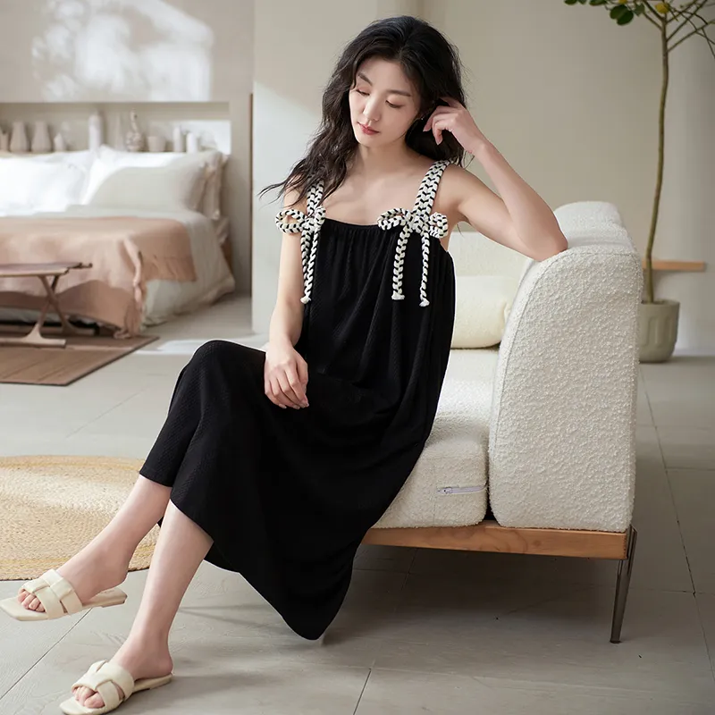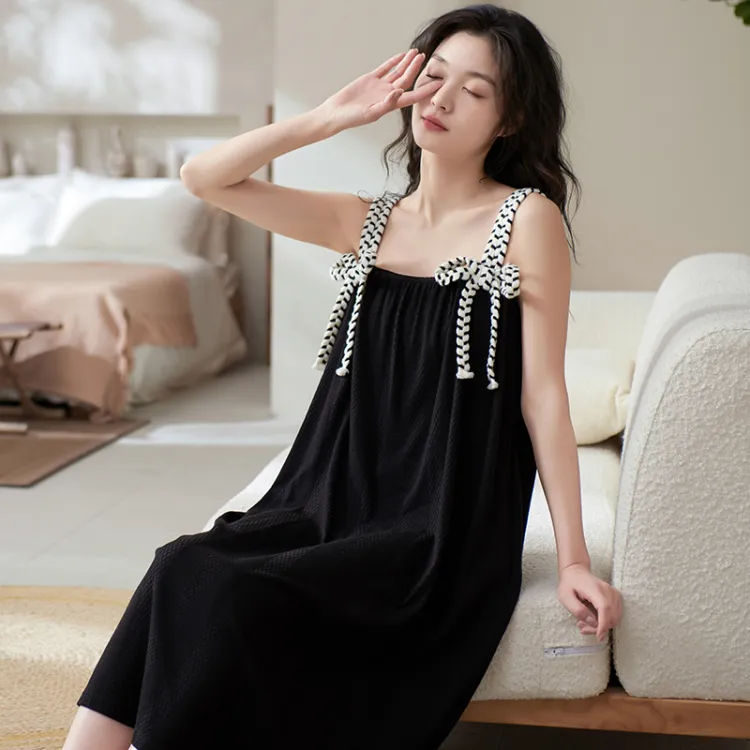 X QINGE Ночная сорочка Лето Женские Черный