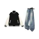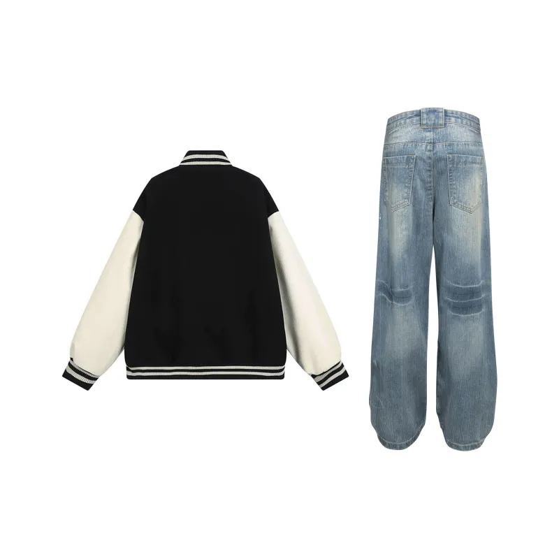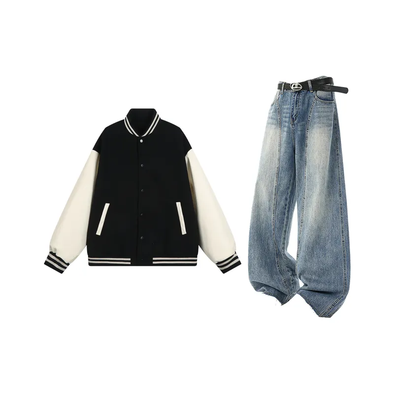 Комплект:Чёрный Белый Топ + Синие Штаны