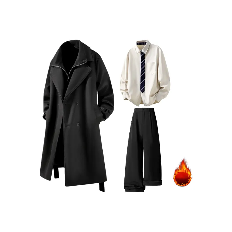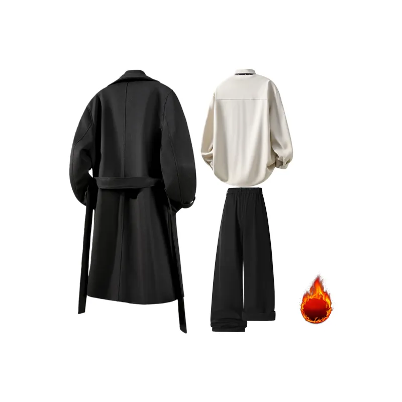 Комплект:Black Coat + Ecru Shirt + Black Pants Черное пальто + экрю рубашка + черные штаны