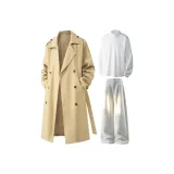 Ecru Trenchcoat + White Lining Fabric Layer + White Photinia Gray Pants