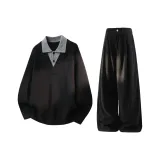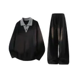 Комплект:Чёрный топ + чёрные штаны с флисовой подкладкой