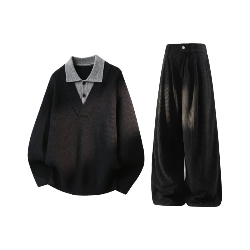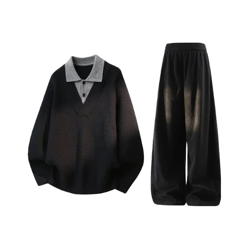 Чёрный топ + чёрные штаны с флисовой подкладкой