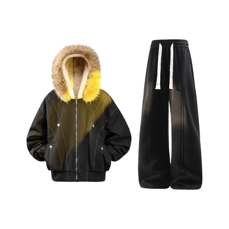 Black Пуховая куртка + Черные штаны с флисовой подкладкой