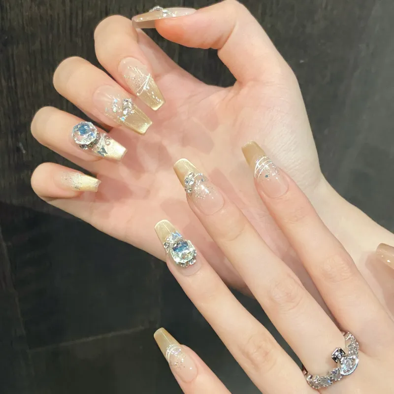 XIAMEIYU Cold Moon Ледяное Сердце Стеклянные бусины Chasing Light Кошачий глаз False Nail Средний LADDER Розовый Телесный Coquette 25 мм