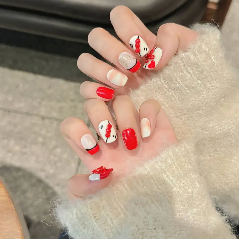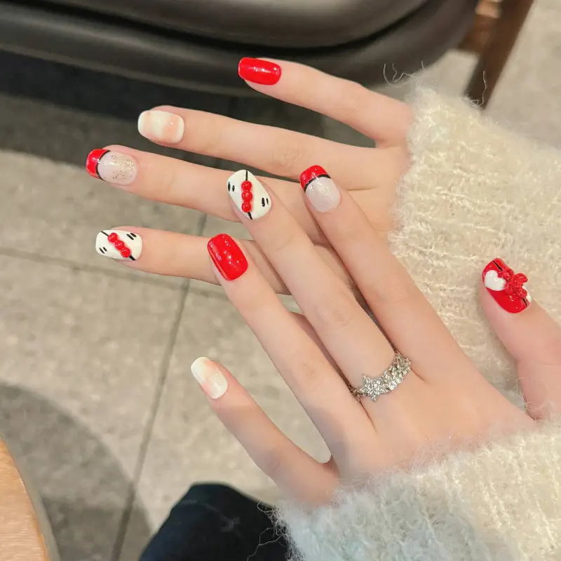 XIAMEIYU Ручной Рисунок 3D-эффект Sugar Stick Укороченный False Nail Короткий LADDER 15mm