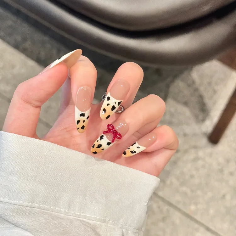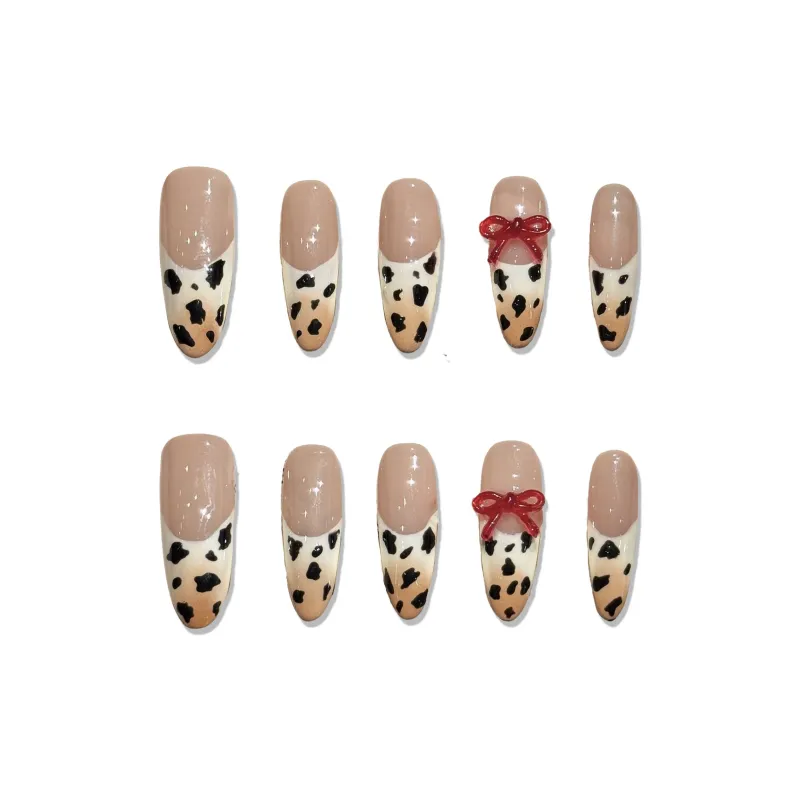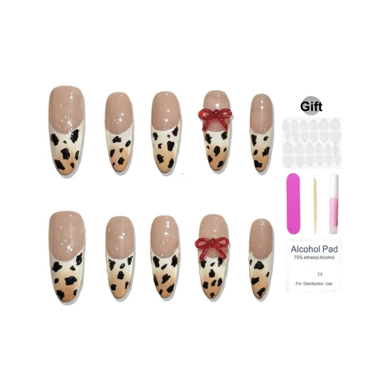 XIAMEIYU Ручная работа Леопардовый принт 3D-эффект False Nail MID Длина (размер в длину) Нюдовый Розовый Телесный Стразы Украшенный 26 мм
