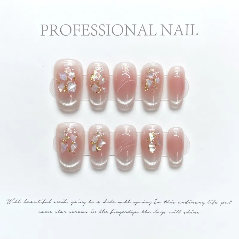 XIAMEIYU Ледяной Кожа Jade Cat Eye Оболочка Золотой Фольга Жемчужный Румяна False Nail Короткий LADDER 20 мм