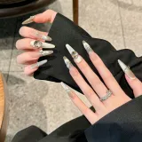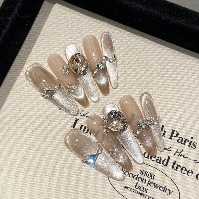 XIAMEIYU Стиль Майярд Искрящийся Градиентный Заостренный Стразы False Nail Заостренный Тип Серебряный Смузи