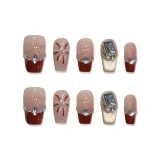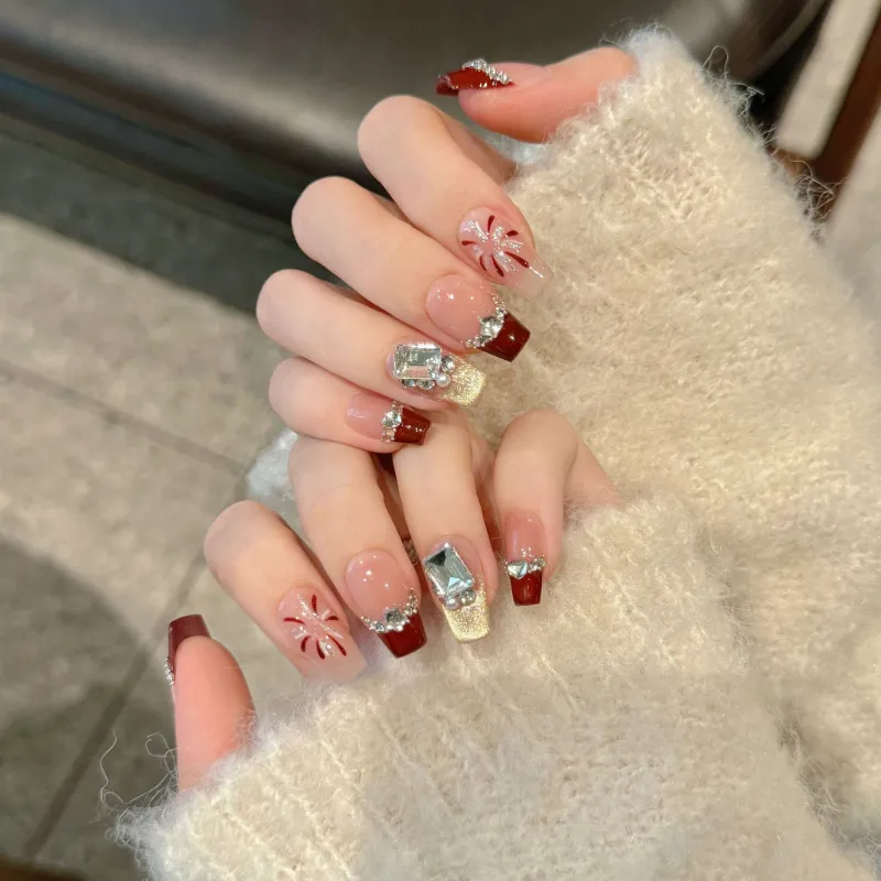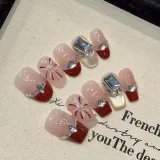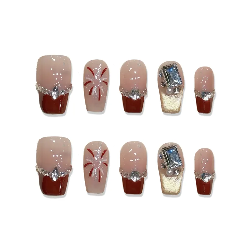 XIAMEIYU Новый год Стиль Красный Ручной Nail Sparkler False Nail Короткий LADDER Кошачий глаз Французский 20 мм