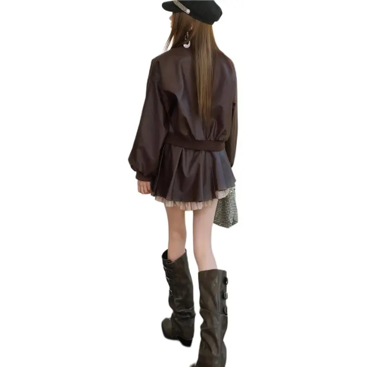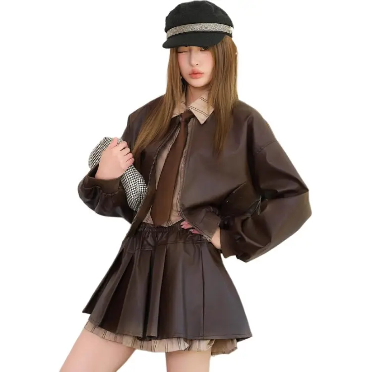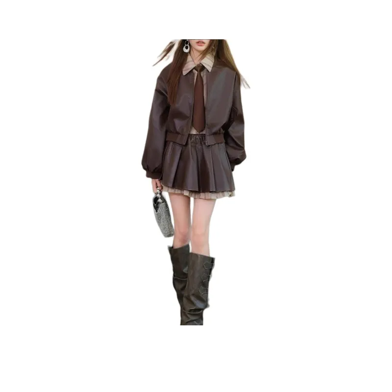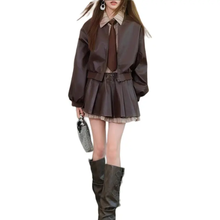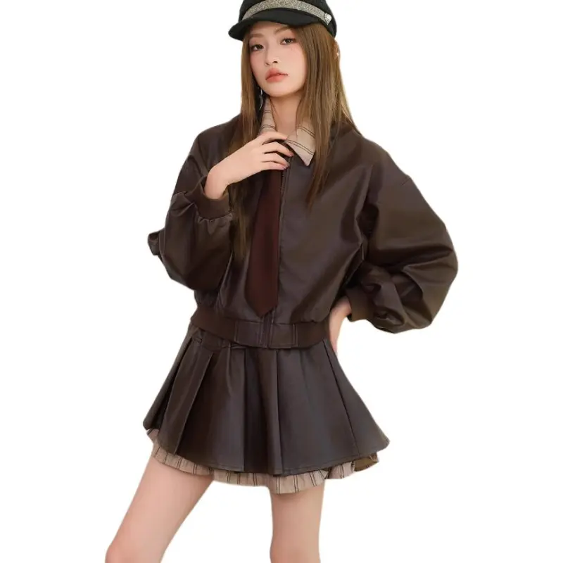 Комплект:Кофейный комплект с имитацией двухслойности и юбкой (с галстуком)