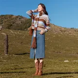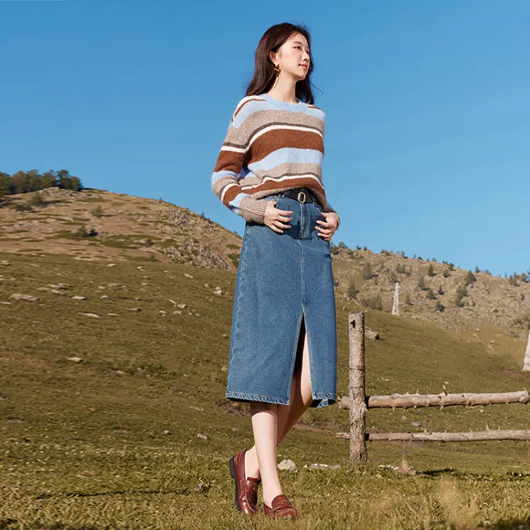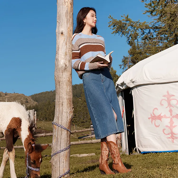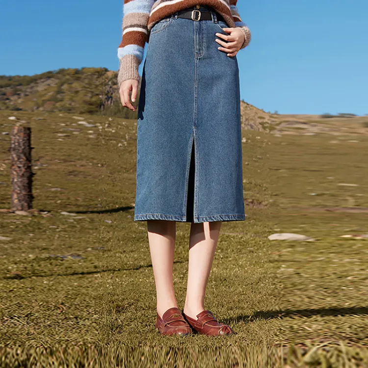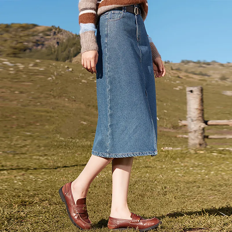 XIANGYING Деним Длинная Юбка Женская Синяя