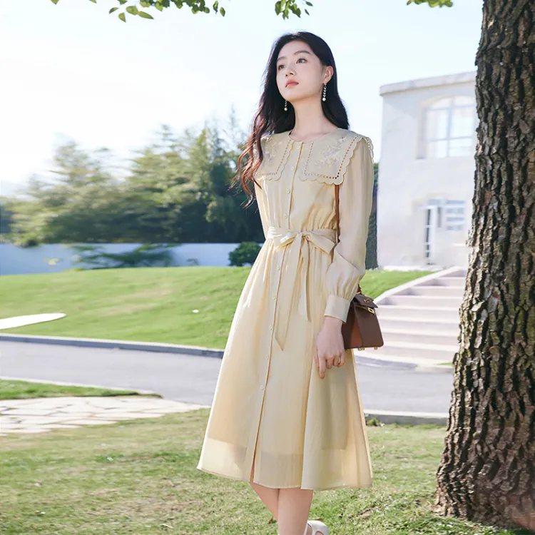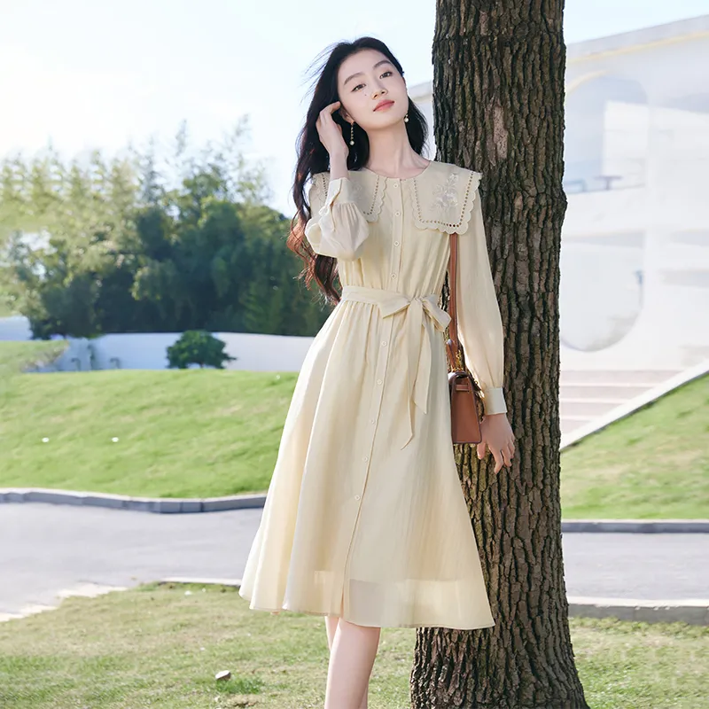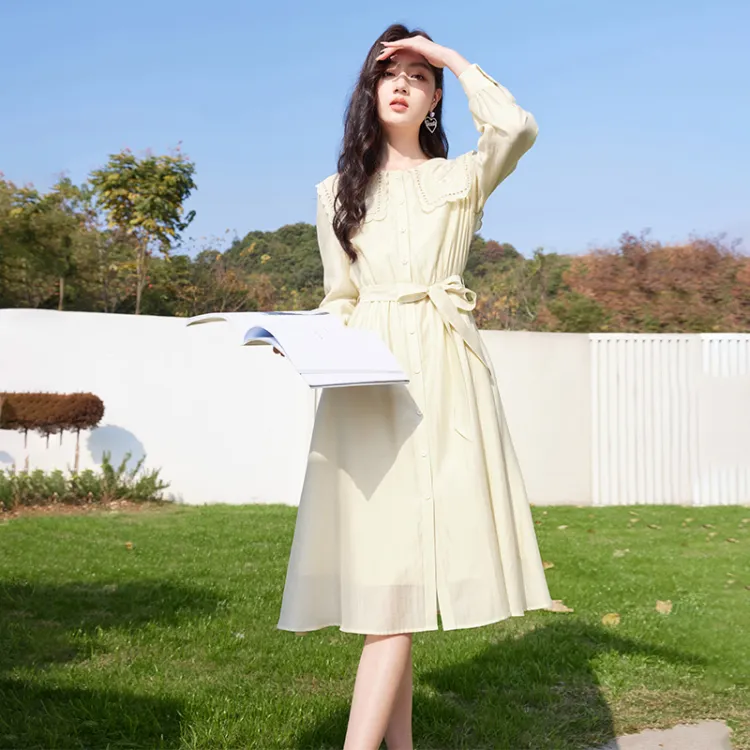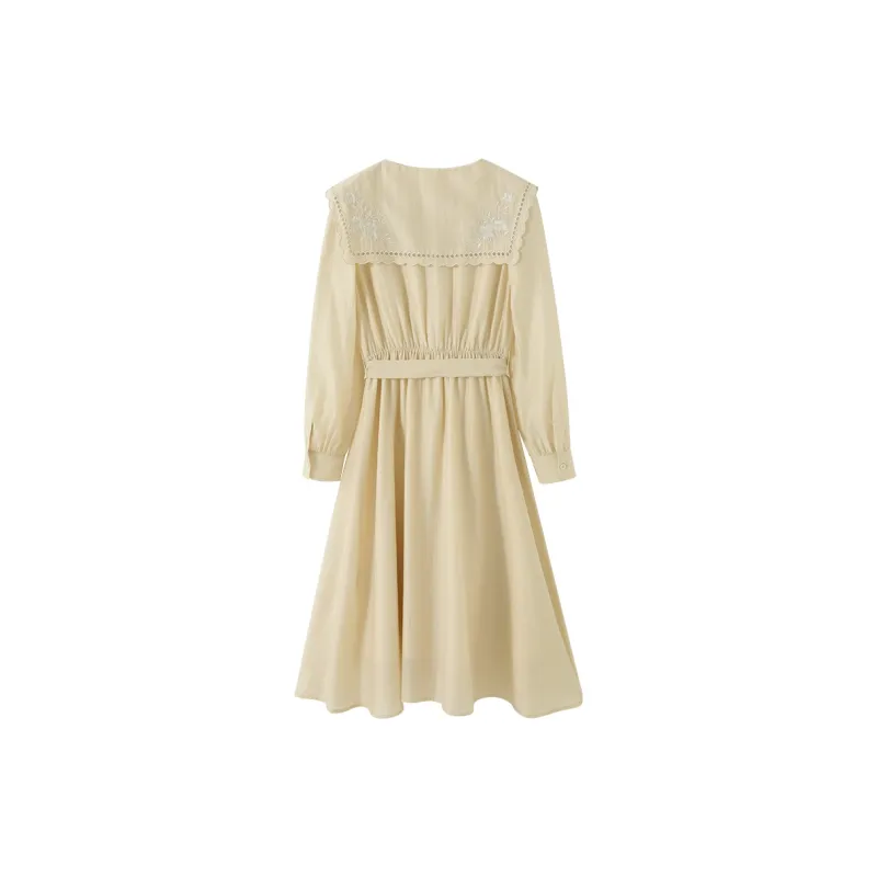 XIANGYING Длинное платье с длинными рукавами женское бежевый